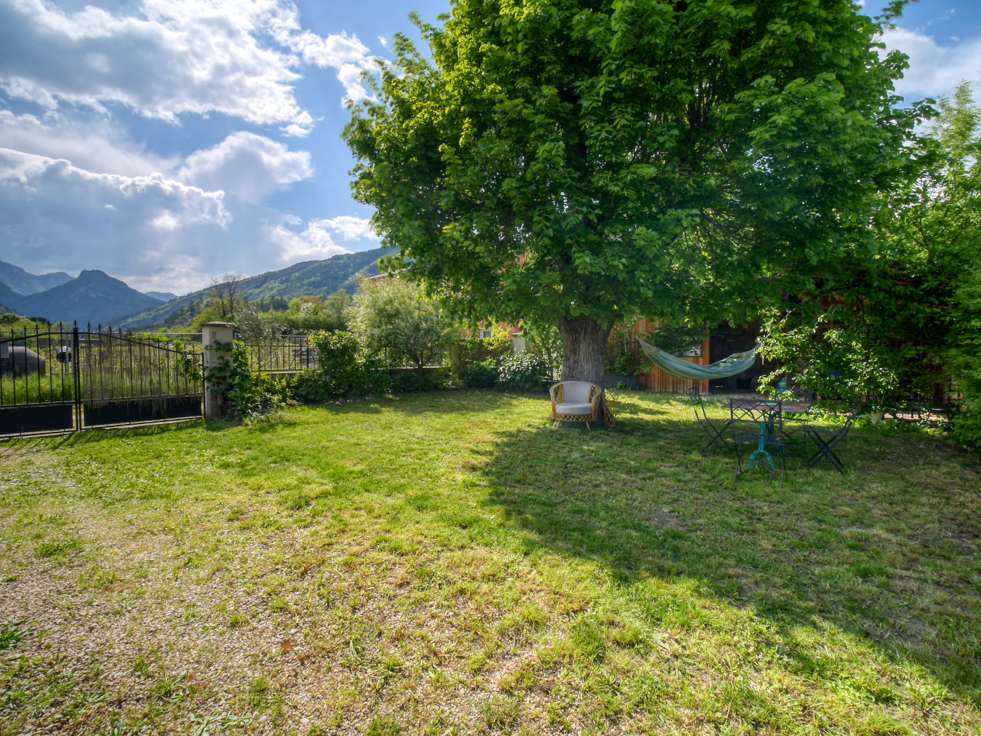 Adossé à la maison, un espace indépendant d’environ cinquante mètres carrés répondra aux besoins des artistes, bricoleurs, thérapeutes ou télétravailleurs en quête d’un atelier ou d’un lieu d’activité dédié. Enfin, un jardin arboré et fleuri ainsi que son hangar en bois complète harmonieusement la propriété, offrant un havre de paix propice à la détente, à l’abri des regards.